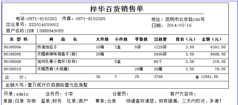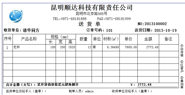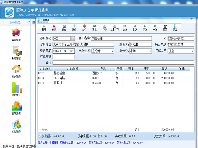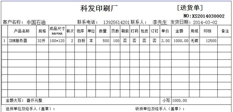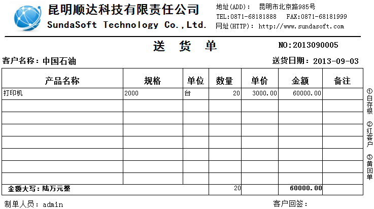 琦順達送貨單打印軟件具有數據自動記憶功能:您開過的送貨單不在需要重復錄入,您開過單的的客戶信息自動保留到客戶資料庫中,您給任何一個客戶的產品售價自動記錄并在當次開單時自動提示、同一張送貨單,可打印為簡體,也可以打印為繁體等等,能夠做到了您所想不到的細致功能。送貨單號由系統自動生成(可按年+月+日+流水號等多種格式生成送貨單號),充分利用強大的數據庫功能給工作帶來的便利,真正的方便實用。系統內置強大的權限管理功能,真真正正的讓您從此告別手工抄寫送貨單和使用EXCEL做月結的煩惱,打印出整齊漂亮的送貨單,同時還能即時管理商品庫存存貨和客戶欠款。