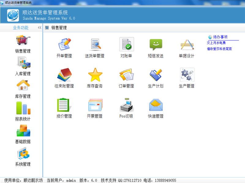 琦順達送貨單打印軟件不僅僅集成了送貨單管理、產品管理、客戶管理、數據分析、圖表分析等常見的送貨單打印管理功能,還集成了商品進銷存管理、應收賬款管理、應付賬款管理、銀行收支管理、支票打印管理、快遞單打印等等功能,在管理好送貨單的同時,您還可以管理好您的產品進銷存情況以及客戶欠款情況。